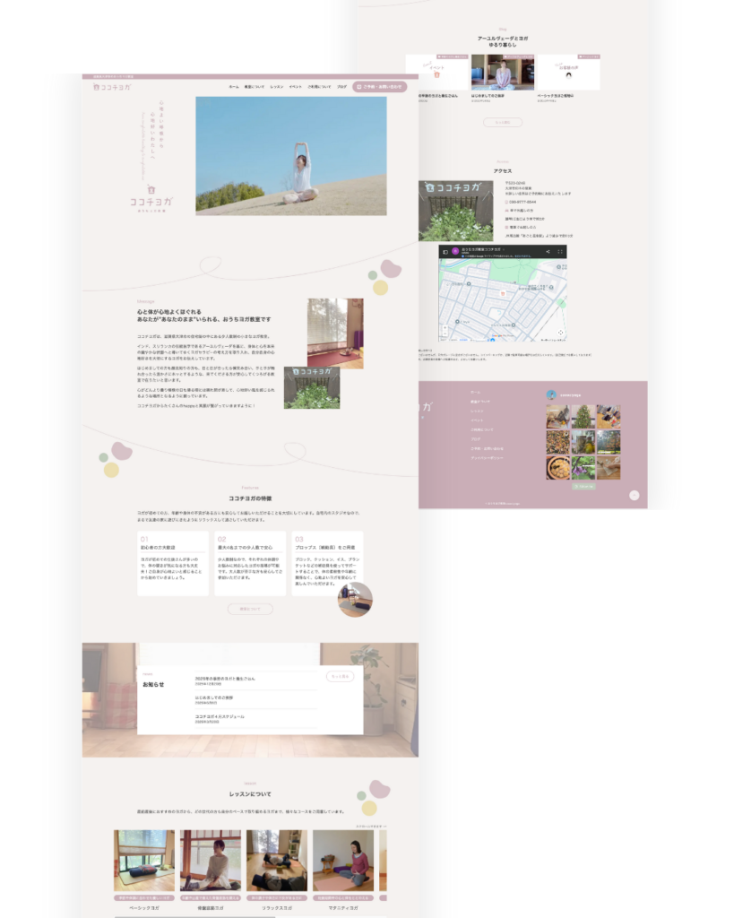 ホームページの掲載内容も、この機会にブラッシュアップし、よりココチヨガ様の魅力やサービス内容、メニューを丁寧にお伝えできるよう構成いたしました。
